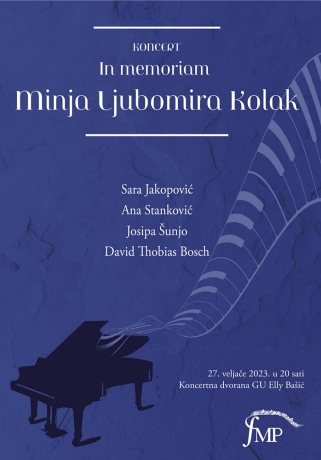 Ove godine nas je iznenada napustila dugogodišnja nastavnica klavira i pročelnica odjela, profesorica Minja Ljubomira Kolak. Bivši učenici, kolege i mnogobrojna publika okupili su se 27. veljače, na njezin rođendan, kako bi se prisjetili drage nam profesorice i kolegice. Tom prilikom njezini bivši učenici Ana Stanković, Sara Jakopović, Josipa Šunjo i David Tobias Bosch prisjetili su nas zašto ju pamtimo kao izuzetnu nastavnicu i osobu. Vrhunskim izvedbama izrazili su svoju zahvalnost i poštovanje, a kod publike pokrenuli vrtlog lijepih sjećanja.