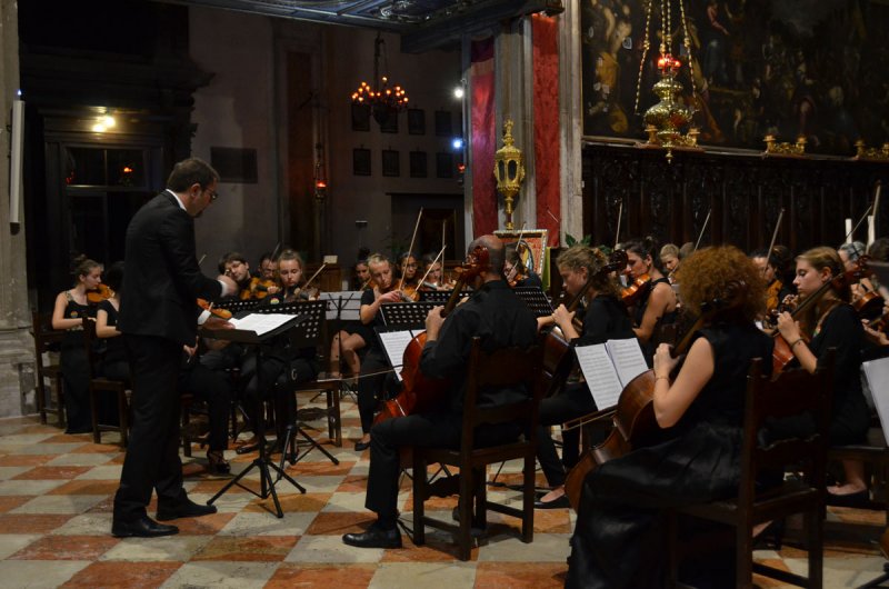 Pod vodstvom Mo Stefana Campoluccia orkestar sastavljen od 42 glazbenika ove godine činili su učenici, i profesori Osnovne muzičke i baletske škole ”Novo Sarajevo” iz Sarajeva, studenti Konzervatorija iz Damaska, Konzervatorija iz talijanske regije Marche i učenice Glazbenog učilišta Elly Bašić.