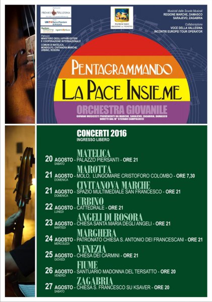 Okupiti orkestar u kojem zajedno sviraju glazbenici židovske, muslimanske i kršćanske vjeroispovijesti neprestano učeći jedni od drugih i pronoseći poruku mira glazbom kao univerzalnim govorom zamisao je fra Armanda Pieruccia jednog od začetnika ovog projekta kojeg je ove godine već četvrti puta uz veliko zalaganje tajnika organizacije Nicole di Francesca uspjela ostvariti Organizacija Premio Vallesina iz grada Jesi.
